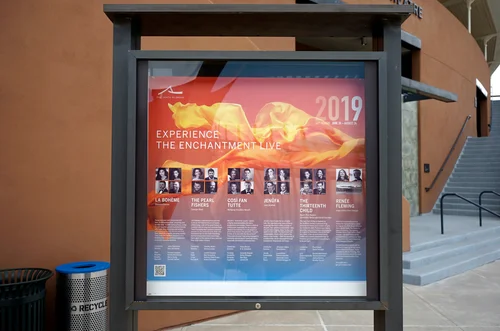 One of the biggest challenges for any performing arts organization is to create a new look & feel for each season that would be compatible and respectful to the institutional brand. One of its functions is to signal a newness of the season with fresh, captivating energy. The design process typically starts when all opera productions are in early stages with no visual reference available. That leads to a purely abstract approach that could coexist with opera artworks coming later in a process and also function as a unifying visual component for the season. In 2020, origami-style folding shapes took on this role. Each surface offered different colorful patterns representing the incredibly wide range of artistic disciplines so characteristic for opera art.