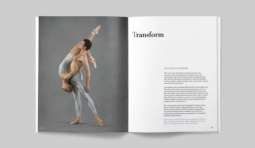 The main focus of the capital campaign brochure’s design was to capture the unique essence of the place and the power of its world-class productions. Santa Fe’s deep brown soil and dusty red sunsets inspired the choice of the primary color palette. The tactilely designed luxurious and formal feel of the brochure makes an elegant medium-size coffee table book that comes in a branded custom envelope.