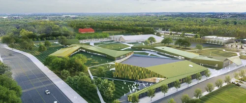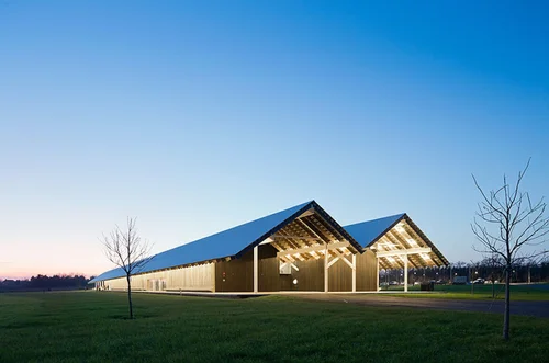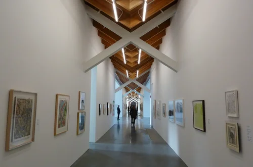 The Parrish Art Museum is an art museum designed by Herzog & de Meuron Architects and located in Water Mill, New York, whereto it moved in 2012 from Southampton Village. The museum focuses extensively on artists’ work from the artist colony of the South and North Shore in Long Island. It was founded in 1897 and has grown into a major art museum with a permanent collection of more than 3,000 works ranging from early nineteenth-century landscape paintings through American Impressionism and into the twentieth and twenty-first centuries, including some well-known names such as Chuck Close, Dan Flavin, Roy Lichtenstein, Jackson Pollock, Lee Krasner, Willem de Kooning, William Merritt Chase, and Fairfield Porter. The new architecture got inspiration from the unique atmosphere of light, water, and sky of the region and the legendary wood-frame artist studio barns of Jackson Pollock, Lee Krasner, and others.